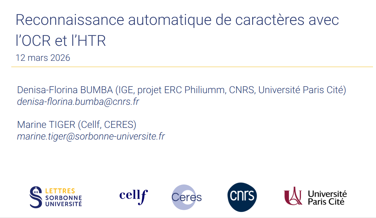 L’objectif de cet atelier est de présenter les différentes étapes dans la reconnaissance de texte imprimé ou manuscrit, de la préparation du corpus à la pratique avec eScriptorium.